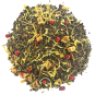 Mélange créatif pour infusion de rooibos, composé d'une base de rooibos d'Afrique du sud et de fruits gourmands - Rooibos vert (38%), rooibos rouge (38%), morceaux de pomme, arôme naturel bio de pêche blanche (6%), morceaux de framboise, arômes naturels bio de fraise (1%) et de framboise (1%), baies roses, pétales de souci.